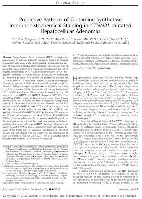 Predictive Patterns of Glutamine Synthetase Immunohistochemical Staining in CTNNB1-mutated Hepatocellular Adenomas - Sempoux, Gouw, Paradis, Balabaud, Bioulac-Sage